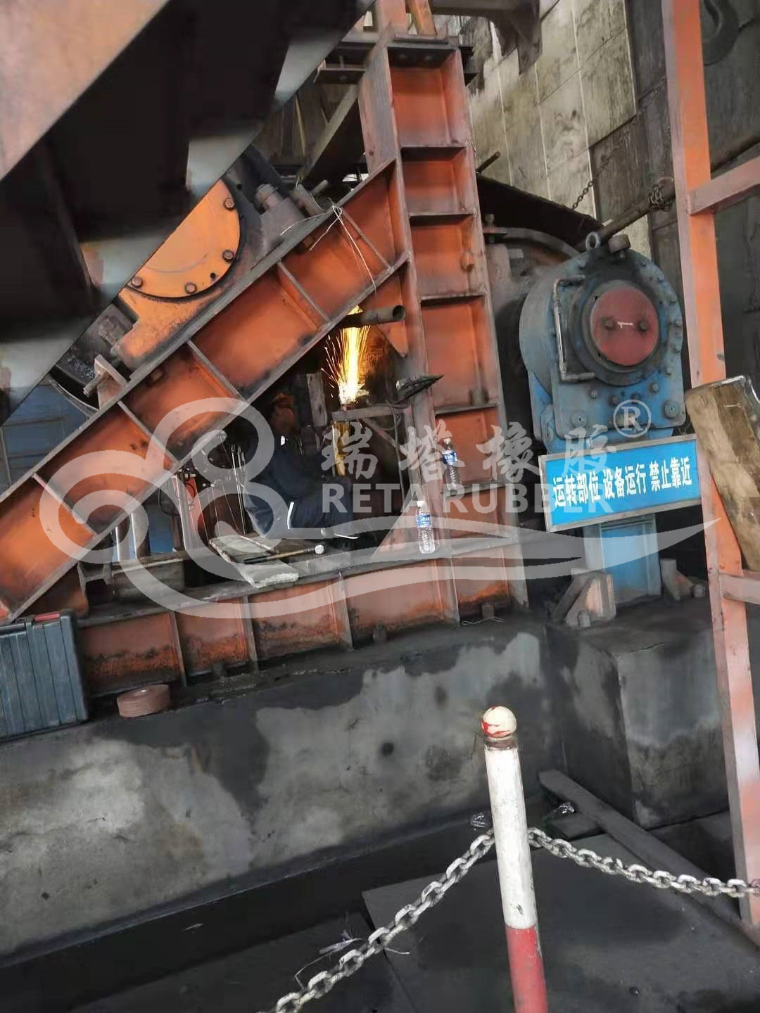 滾筒包膠菱形膠板現場施工