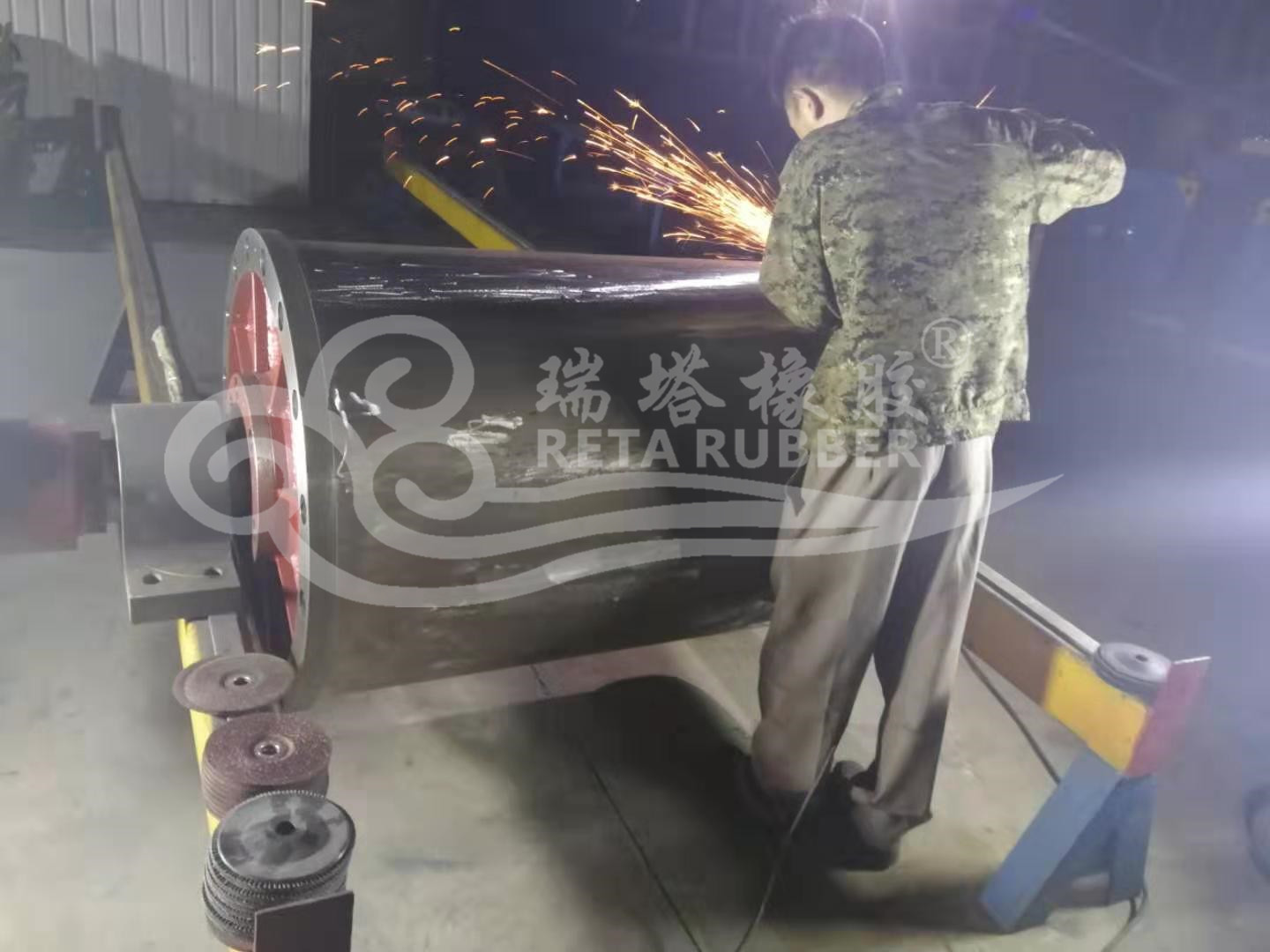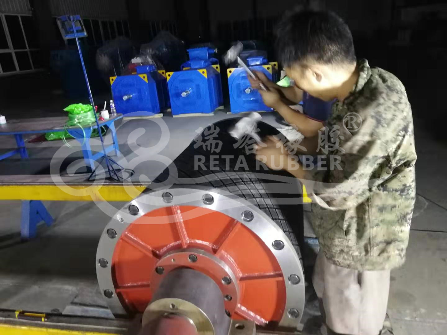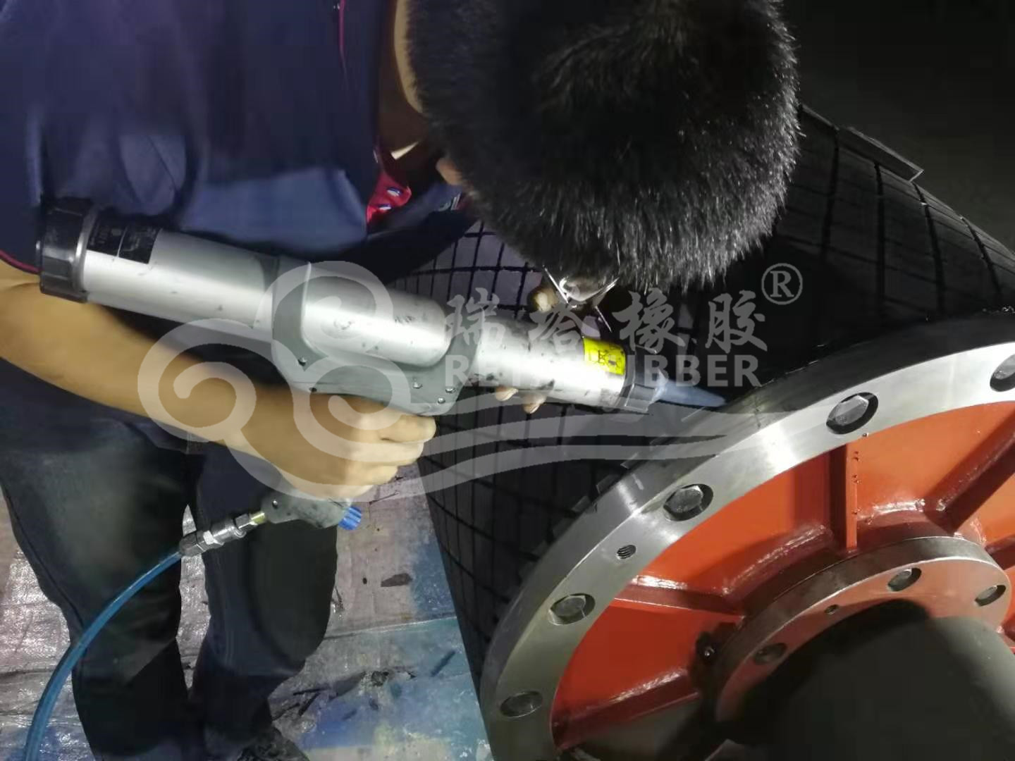 瑞塔橡膠滾筒包膠現場施工
