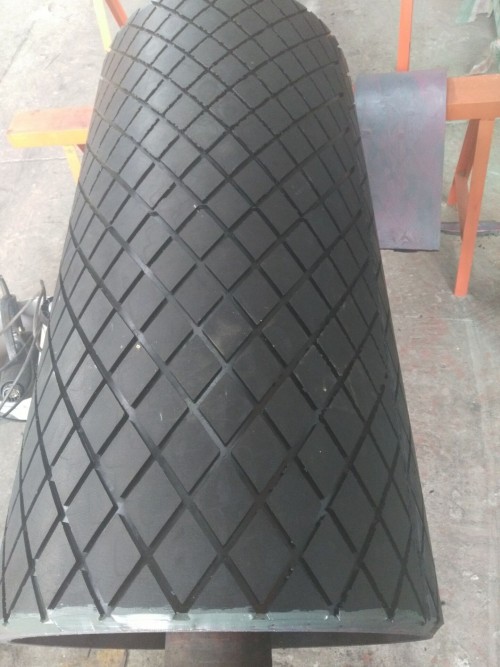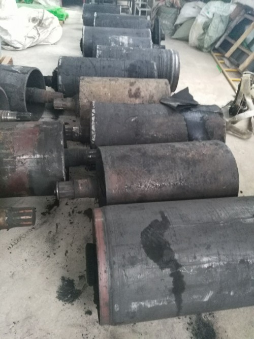 月初,鄭煤集團把一批替換下來的滾筒發(fā)到我廠進行檢修,同時要求表面進行菱形膠板包膠,厚度不低于12mm,收到客戶滾筒之后,我公司安排人員進行相關檢修與表面包膠!