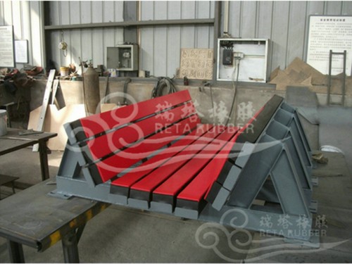 以下是瑞塔橡膠為選煤廠特殊設計的平托式緩沖床,主要是客戶的實際使用機架位特殊角度,而且沖擊較大,因此瑞塔根據客戶的實際情況經行專門設計,以滿足客戶的實際使用要求。