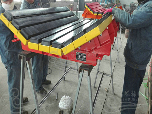 緩沖床客戶訂單紛紛發貨以下圖片是瑞塔橡膠根據山西5家客戶實際工礦條件和安裝使用需求設計生產的帶寬1200mm,長度1200mm阻燃超重型緩沖床、重型緩沖床以及帶寬1000mm和帶寬1200mm高彈性重型緩沖床(井上用)。